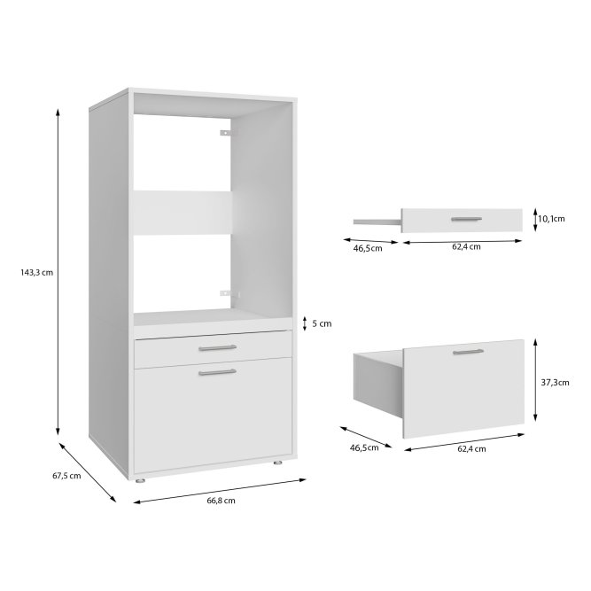Szafka o wymiarach: szerokość 66,8 cm, wysokość 143,3 cm. głębokość 67,5 cm