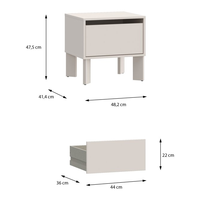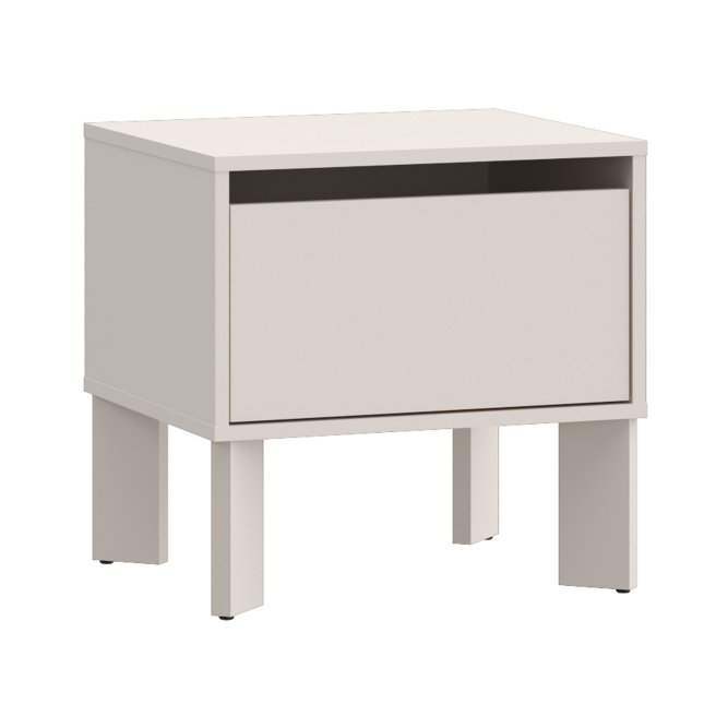 Szafka nocna Tahoe w dekorze Piaskowym to nowoczesny i stylowy dodatek do każdej sypialni, który łączy funkcjonalność z estetyką. Jej kompaktowa forma zawiera jedną przestronną szufladę oraz otwartą wnękę, idealną do przechowywania niezbędnych drobiazgów przy łóżku. Wysokie nóżki dodają lekkości konstrukcji i ułatwiają utrzymanie czystości pod meblem. Dzięki ciepłemu odcieniowi piaskowemu, szafka wprowadza do wnętrza przytulny i modny akcent.