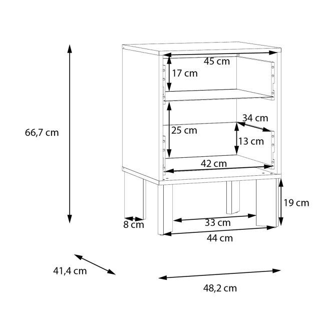 Wymiary szafki: szer. 48,2 cm × wys. 66,7 cm × gł. 41,4 cm