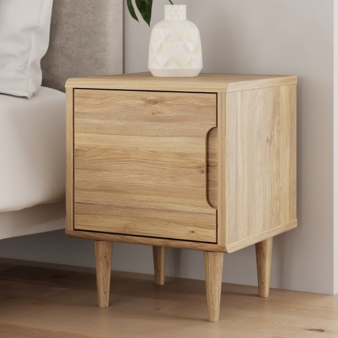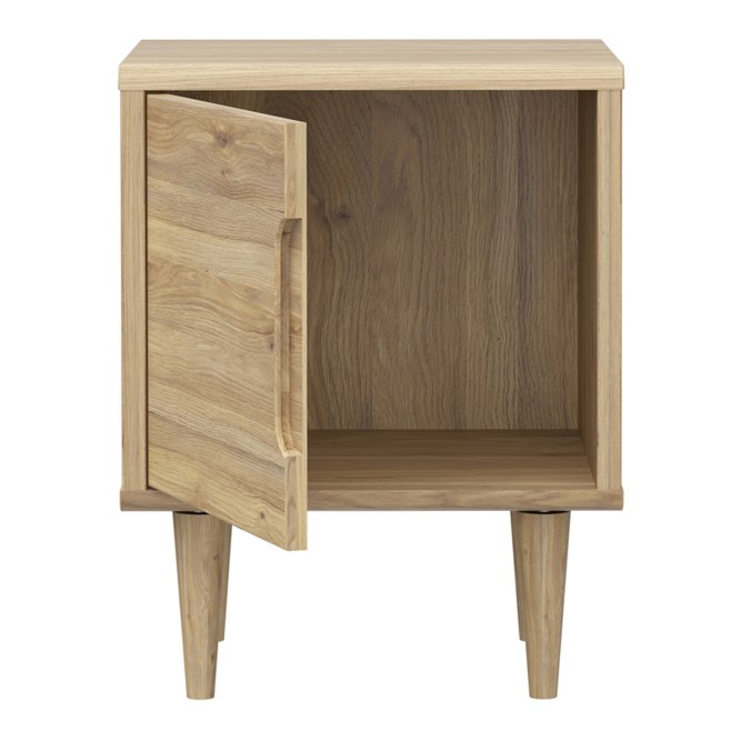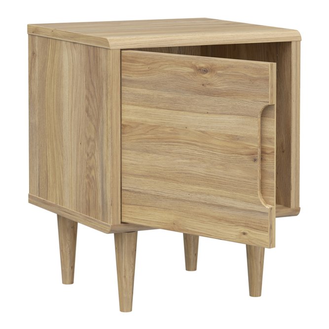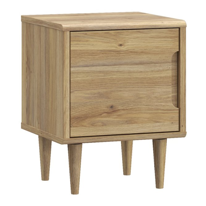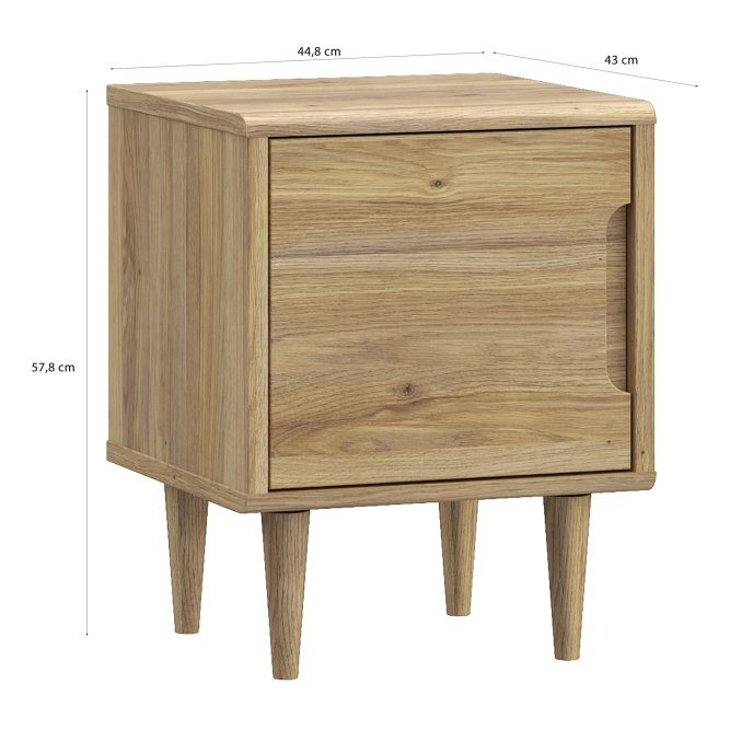 Szafka nocna Sherbrooke w dekorze: Dąb Mauvella to stylowy i funkcjonalny mebel, idealny do nowoczesnych wnętrz. Jej prosty design z gładkimi frontami i drewnianymi nóżkami nadaje wnętrzu elegancji i lekkości. Pojemna wnęka za drzwiami zapewnia dużo miejsca na przechowywanie, a cichy domyk gwarantuje komfort użytkowania.