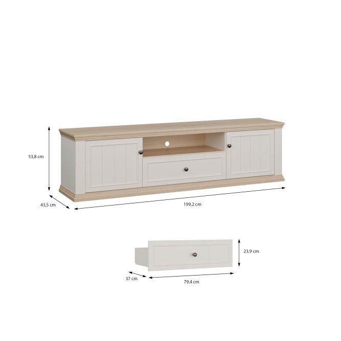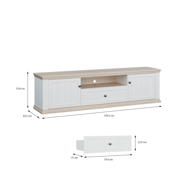 Wymiary: szerokość 199,2 cm, wysokość 53,8 cm, głębokość 43,5 cm
