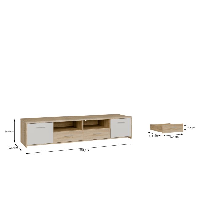 Szafka RTV z szufladami 180 cm QUADRO Dąb Sonoma/Biały