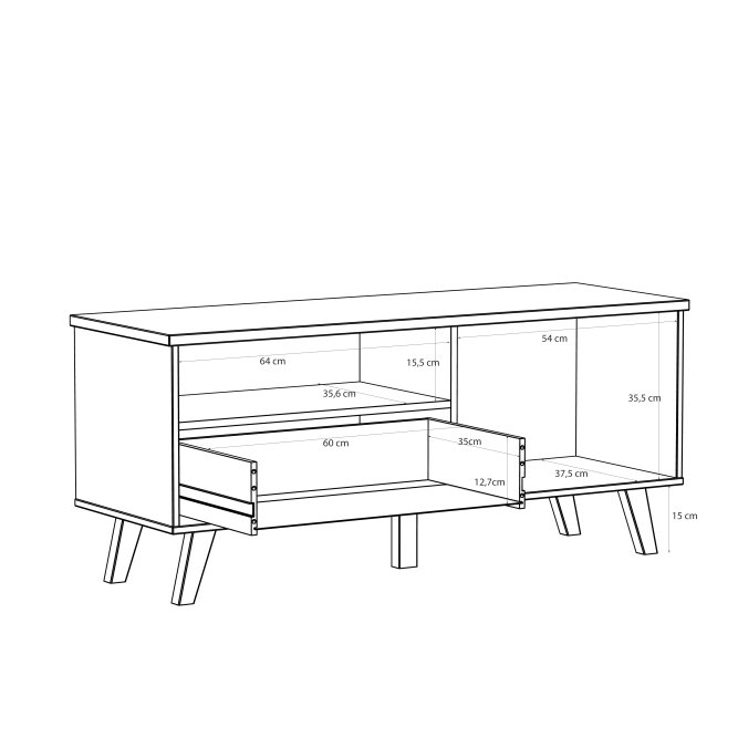 - Wymiary: szerokość 124,4 cm, wysokość 54,3 cm, głębokość 42 cm