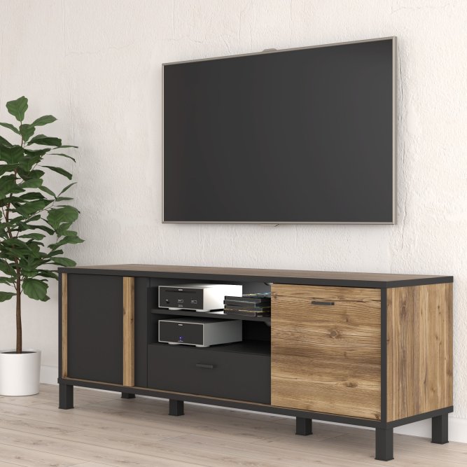 Szafka RTV 160 cm HAYATO Czarny/Świerk Alpejski