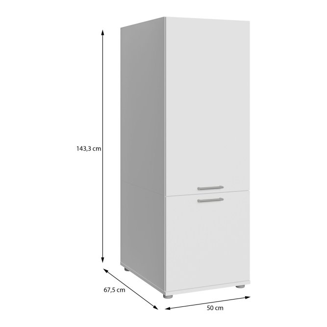 Szafka o wymiarach: szerokość 50 cm x wysokość 143,3 cm x głębokość 67,5 cm