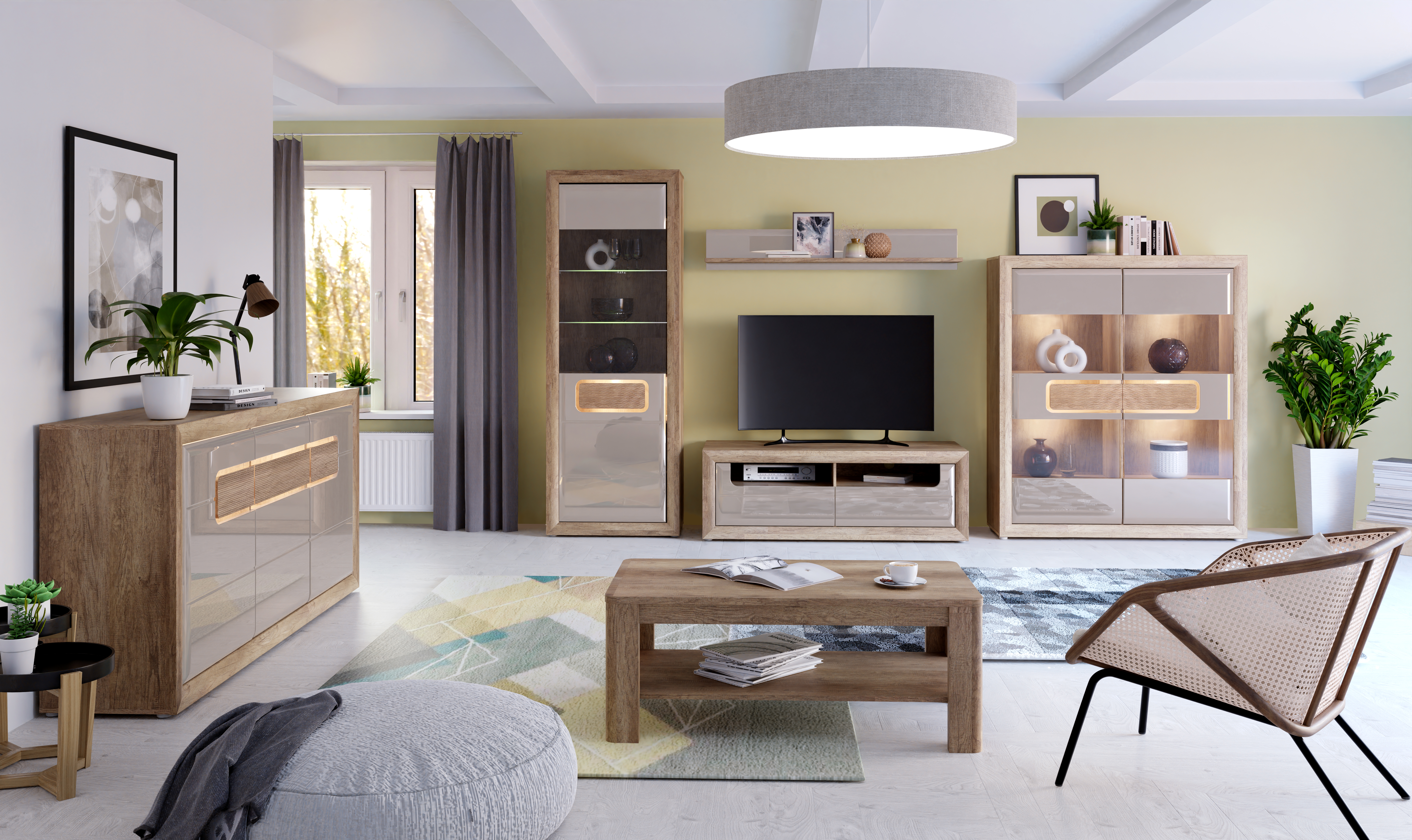 W aranżacji wnętrz – tak jak i w małżeństwie – chodzi o dobre połączenie i komunikację. Dębowy dekor z uwydatnionym rysunkiem drewna oraz wykończone na wysoki połysk fronty to zgrany duet, dobrze dogadująca się para, nawiązująca nić porozumienia na wielu płaszczyznach. Kolekcja TIZIANO udowadnia jednocześnie, że w dobrym związku ważne są również kontrasty i przeciwieństwa. Wyczuwalna pod palcami tekstura uchwytów staje się przyciągającym uwagę akcentem na gładkim froncie, matowa powierzchnia przeplata się z delikatnie połyskującą. Dzięki tym dialogom pomieszczenie nabiera charakteru.