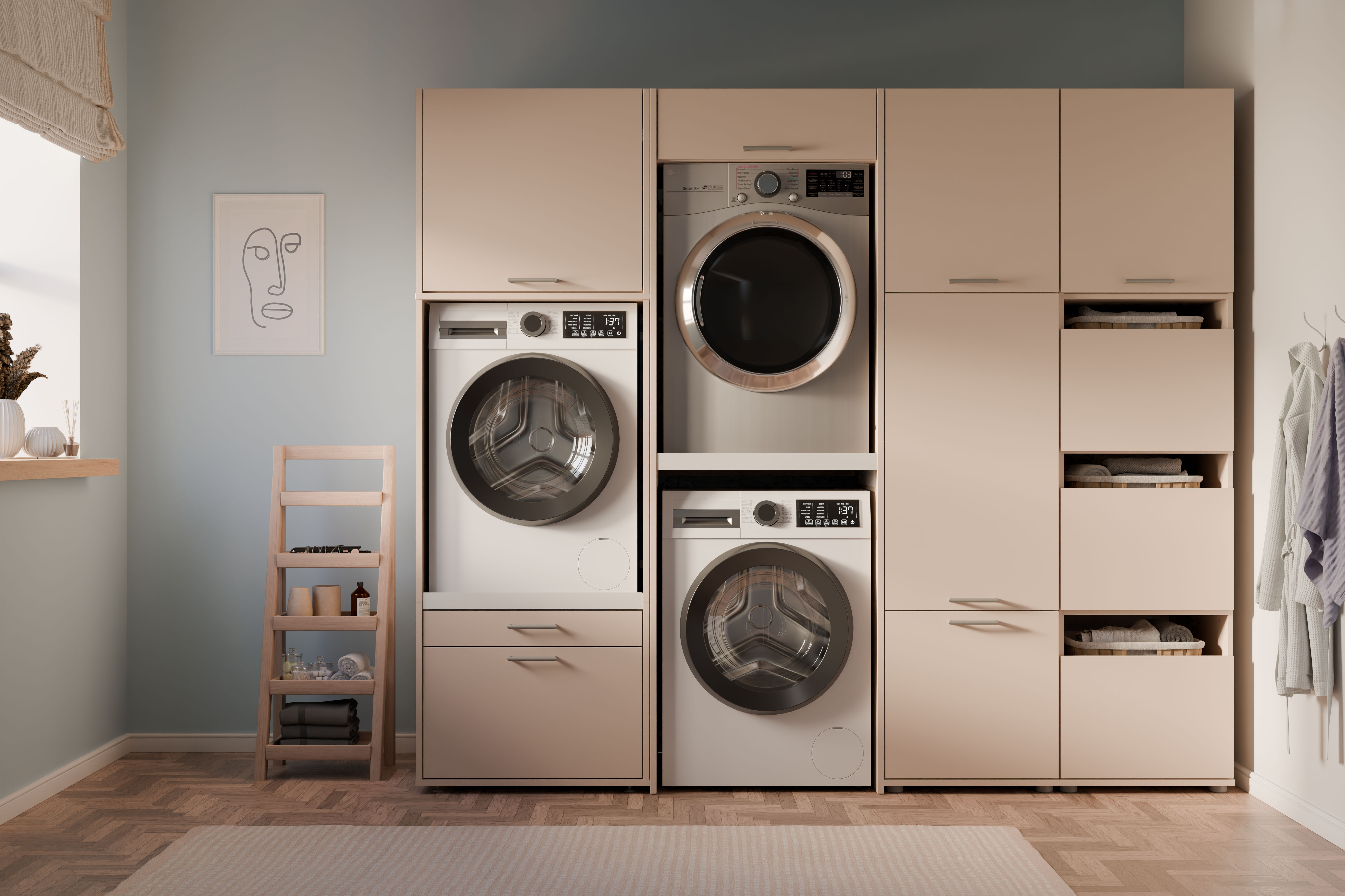 Odkryj kolekcję WASHCAB – nowoczesne meble do pralni, stworzone z myślą o wygodnej i dobrze zorganizowanej strefie prania. Przemyślane układy szafek, półek i zabudów na pralkę i szuszarkę pozwalają maksymalnie wykorzystać dostępną przestrzeń, ułatwiając przechowywanie detergentów, akcesoriów i tekstyliów. Dzięki temu codzienne życie staje się prostsze, a wnętrze pozostaje schludne i uporządkowane.
