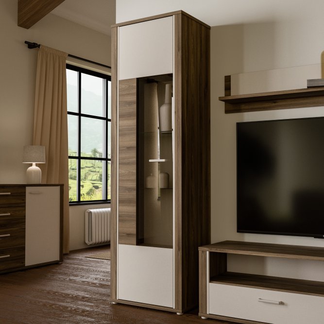 Witryna - słupek z kolekcji DEDELOS świetnie wyeksponuje Twoje ulubione książki, pamiątki oraz dekoracje. Wąska witryna doskonale wygląda zestawiona z pozostałymi elementami z kolekcji, tworząc wymarzoną aranżację salonu.