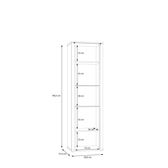 - Wymiary: szerokość 58.8 cm, wysokość 198.3 cm, głębokość 41.6 cm