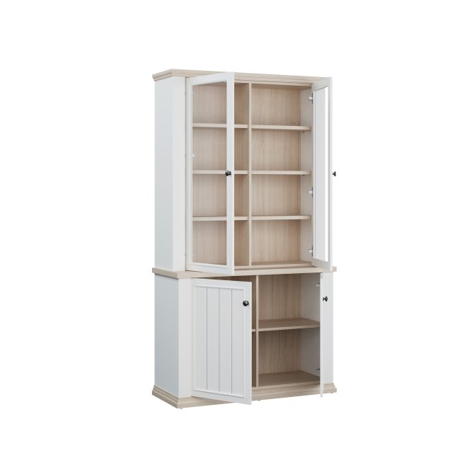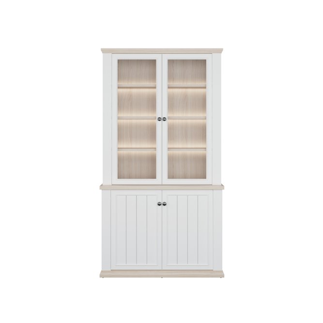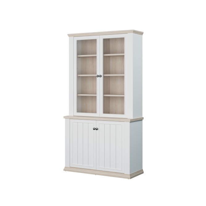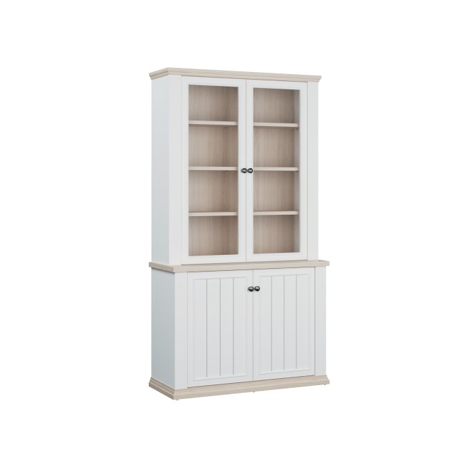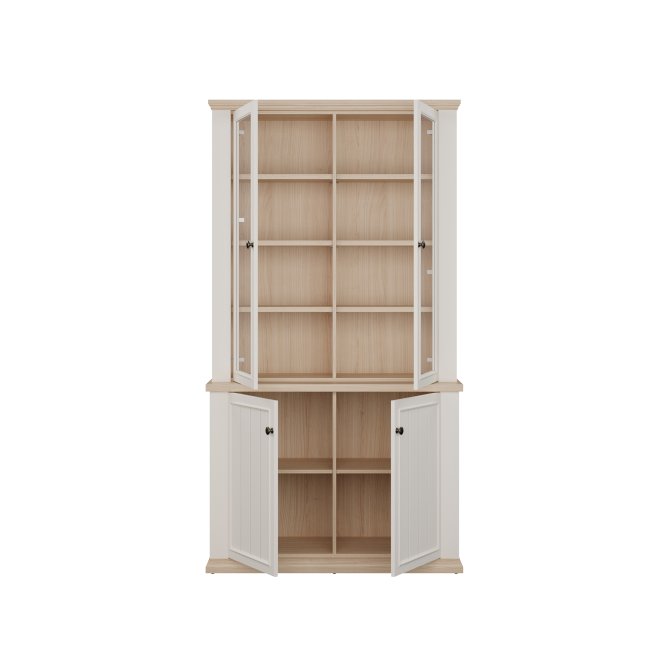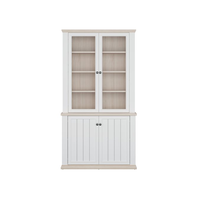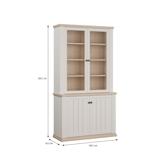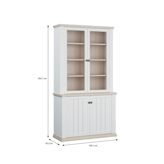 Witryna z kolekcji PONTYPOOL o szerokości niemal 110 cm świetnie wyeksponuje Twoje ulubione książki, pamiątki oraz dekoracje. Pomoże w tym 8 regulowanych półek i 2 półki montowane na stałe. Mebel wyposażony w transparentne, bezpieczne szkło hartowane. 4-drzwiowa witryna doskonale wygląda zestawiona z pozostałymi elementami z kolekcji, tworząc wymarzoną aranżację salonu.