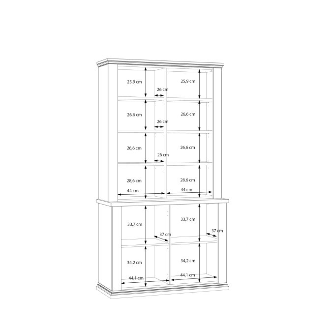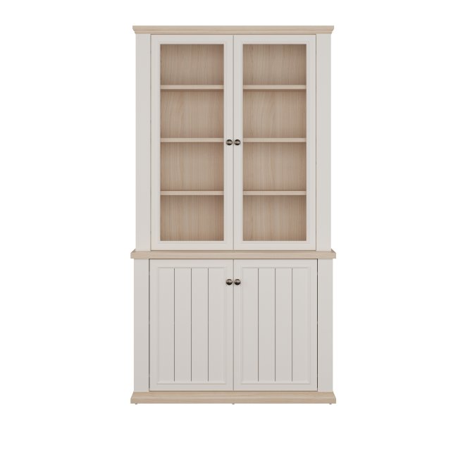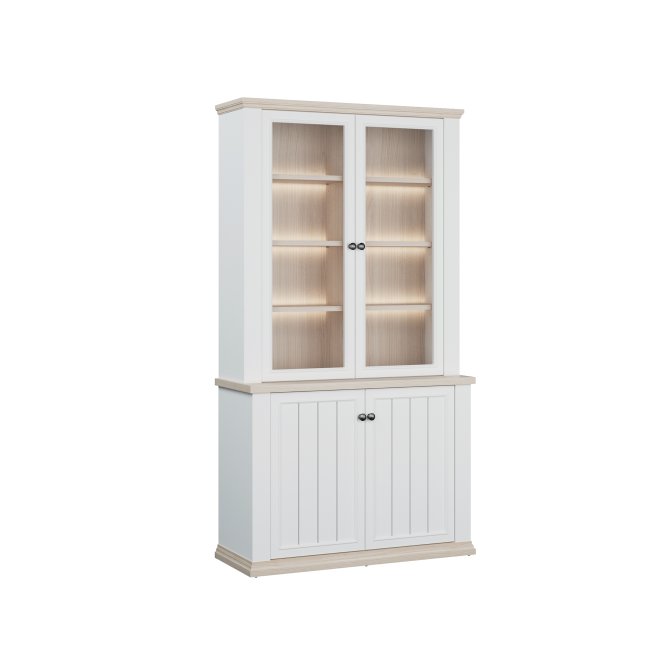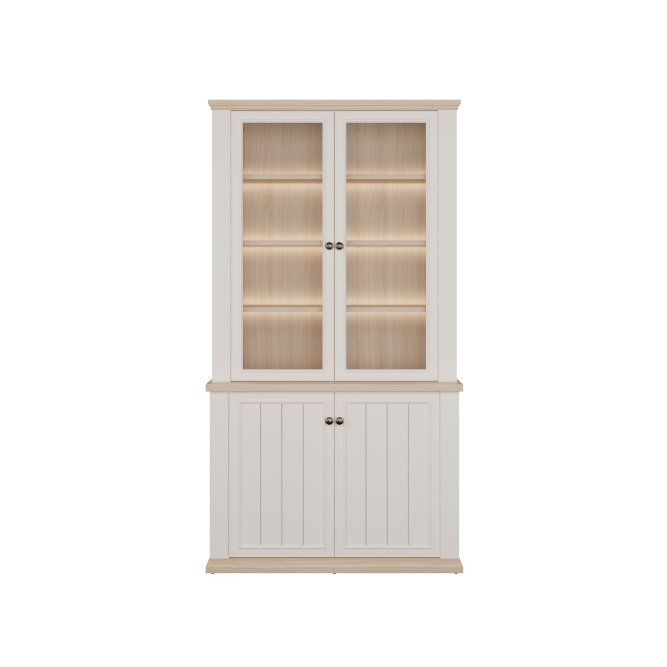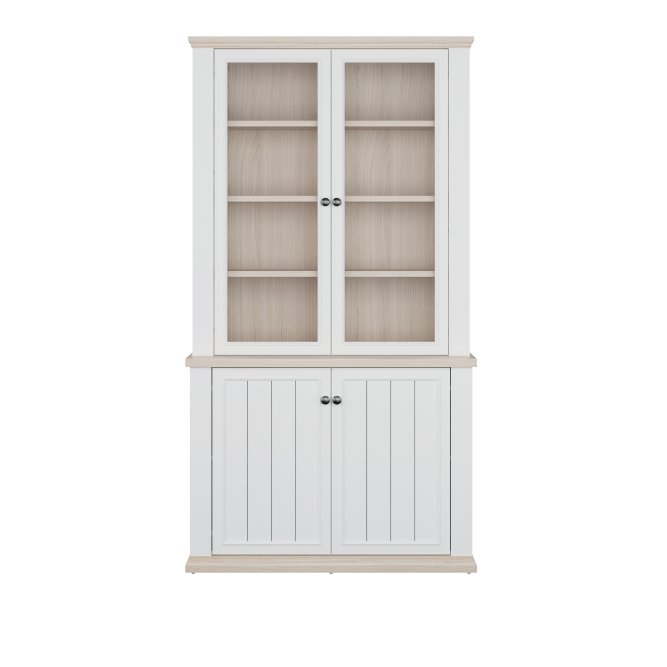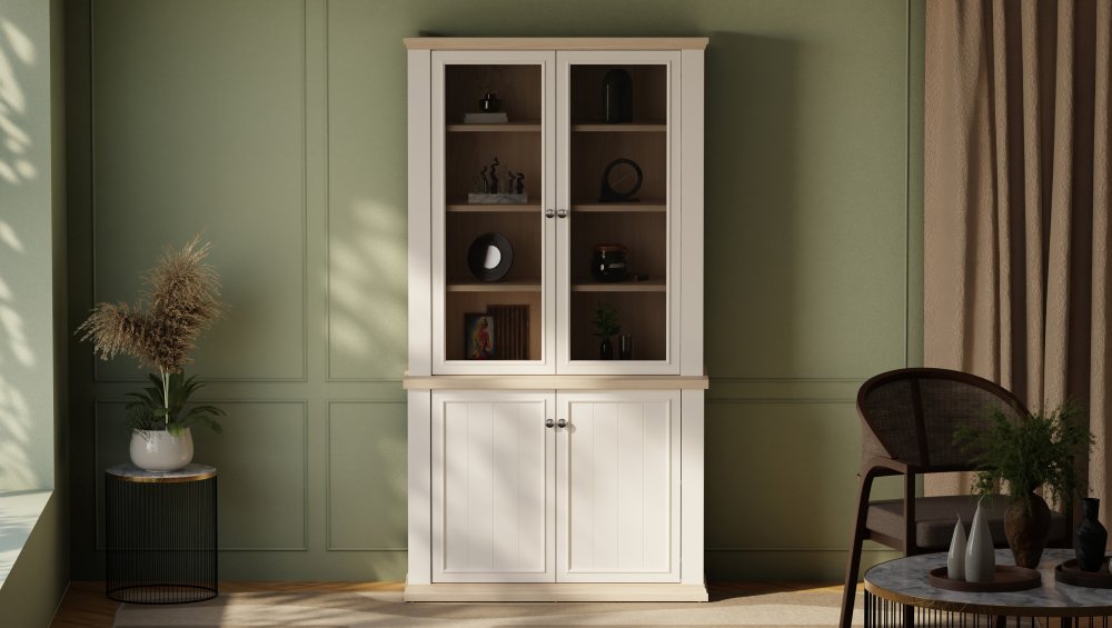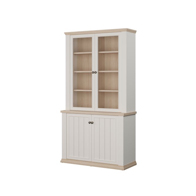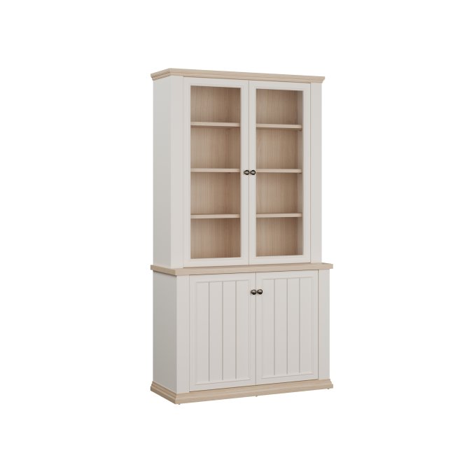 Witryna z kolekcji PONTYPOOL o szerokości niemal 110 cm świetnie wyeksponuje Twoje ulubione książki, pamiątki oraz dekoracje. Pomoże w tym 8 regulowanych półek i 2 półki montowane na stałe. Mebel wyposażony w transparentne, bezpieczne szkło hartowane. 4-drzwiowa witryna doskonale wygląda zestawiona z pozostałymi elementami z kolekcji, tworząc wymarzoną aranżację salonu.