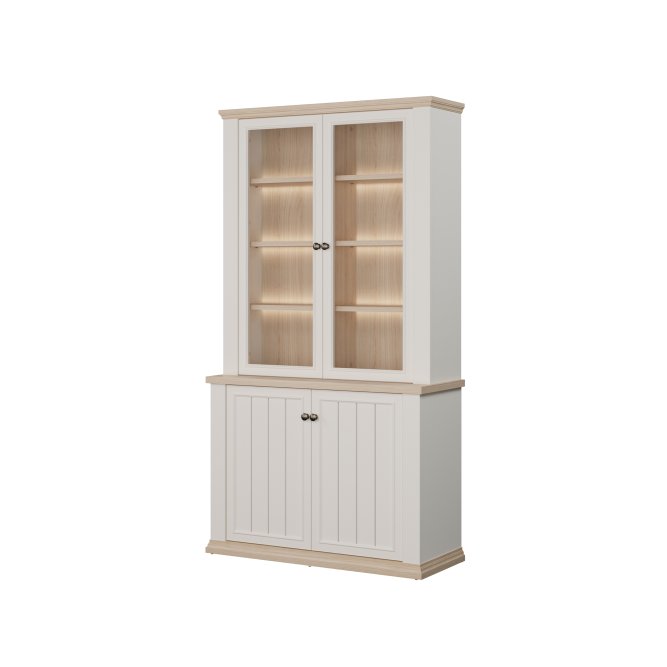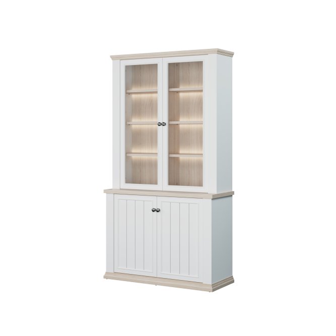 Witryna wykonana w efektownym połączeniu dekorów: Biały / Dąb Riva