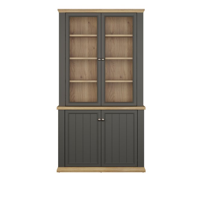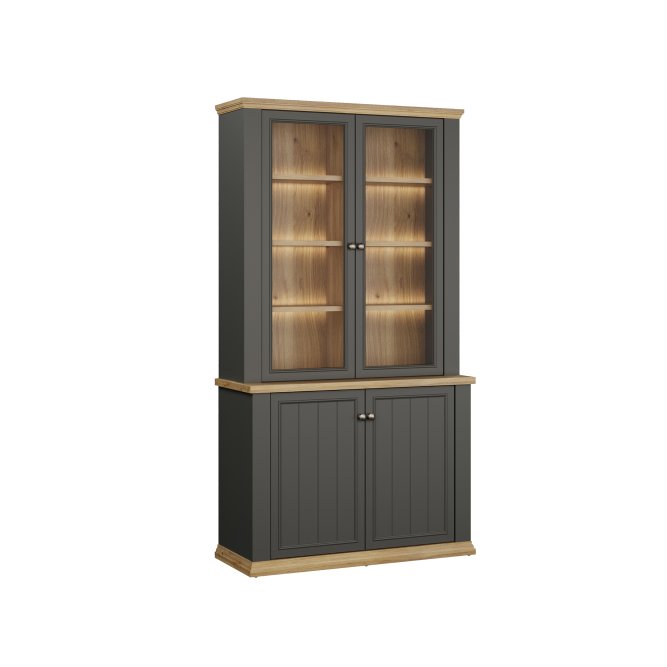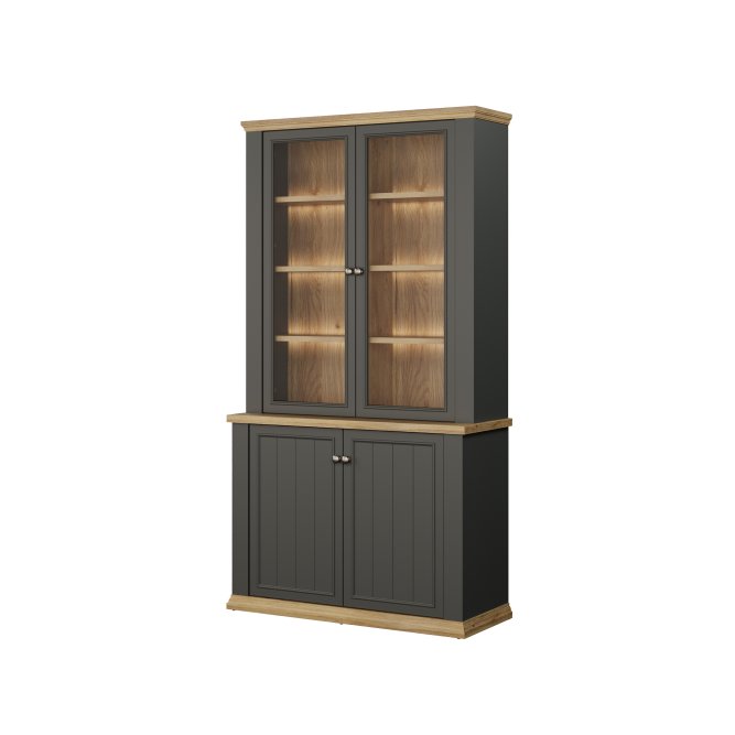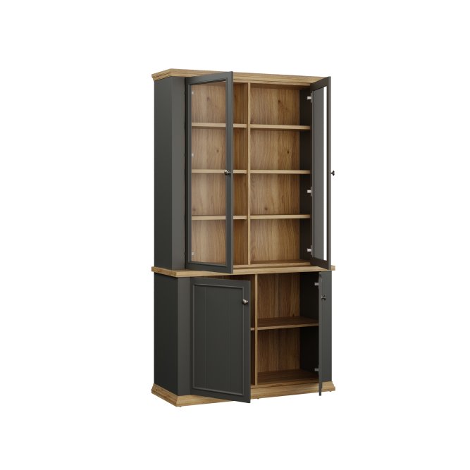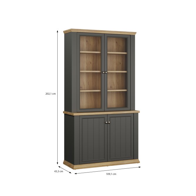 Witryna z kolekcji PONTYPOOL o szerokości niemal 110 cm świetnie wyeksponuje Twoje ulubione książki, pamiątki oraz dekoracje. Pomoże w tym 8 regulowanych półek i 2 półki montowane na stałe. Mebel wyposażony w transparentne, bezpieczne szkło hartowane. 4-drzwiowa witryna doskonale wygląda zestawiona z pozostałymi elementami z kolekcji, tworząc wymarzoną aranżację salonu.