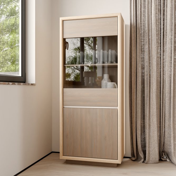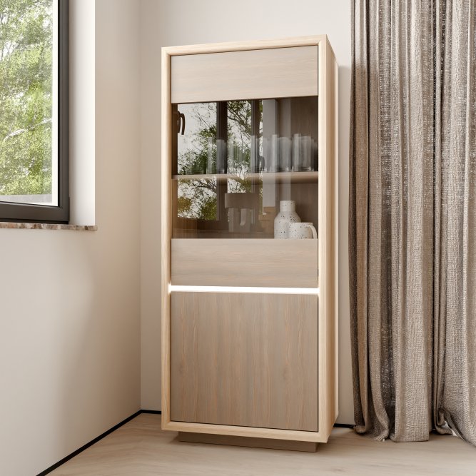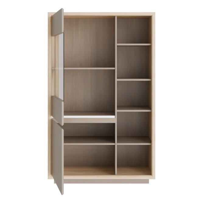 Witryna z kolekcji FICAR świetnie wyeksponuje Twoje ulubione książki, pamiątki oraz dekoracje. Pomogą w tym (2) regulowane półki i (1) półka montowana na stałe. n/a. Mebel wyposażony w transparentne, bezpieczne szkło hartowane.2-drzwiowa witryna doskonale wygląda zestawiona z pozostałymi elementami z kolekcji, tworząc wymarzoną aranżację salonu.