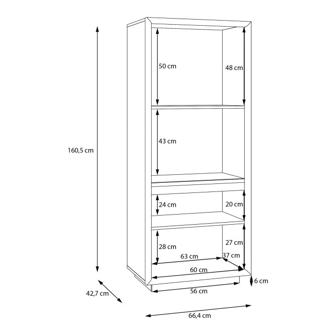 - Wymiary: szerokość 66,4 cm, wysokość 160,5 cm, głębokość 42,7 cm