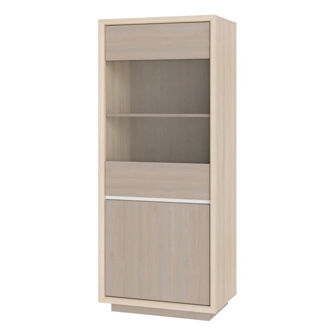 - Witryna wykonana w połączeniu dekorów: Dąb Riva / Sosna Imbiah / Sosna Imbiah