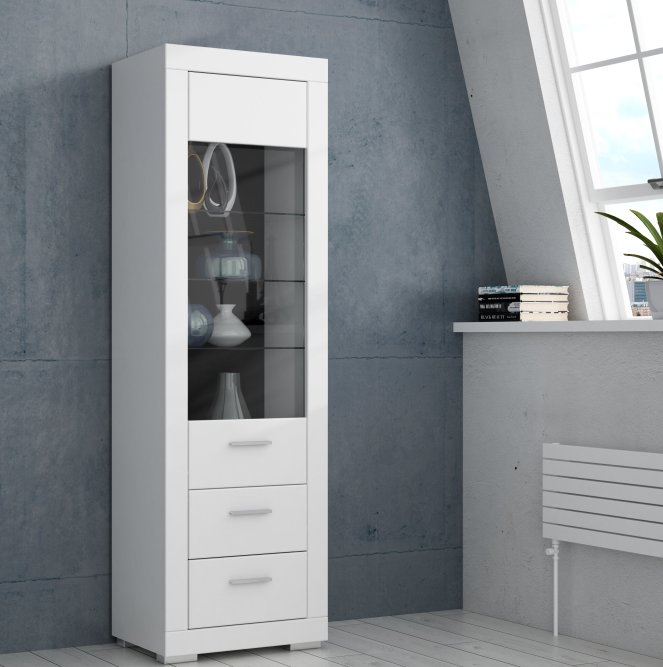 Wąska witryna 60 cm z szufladami SNOW Biały